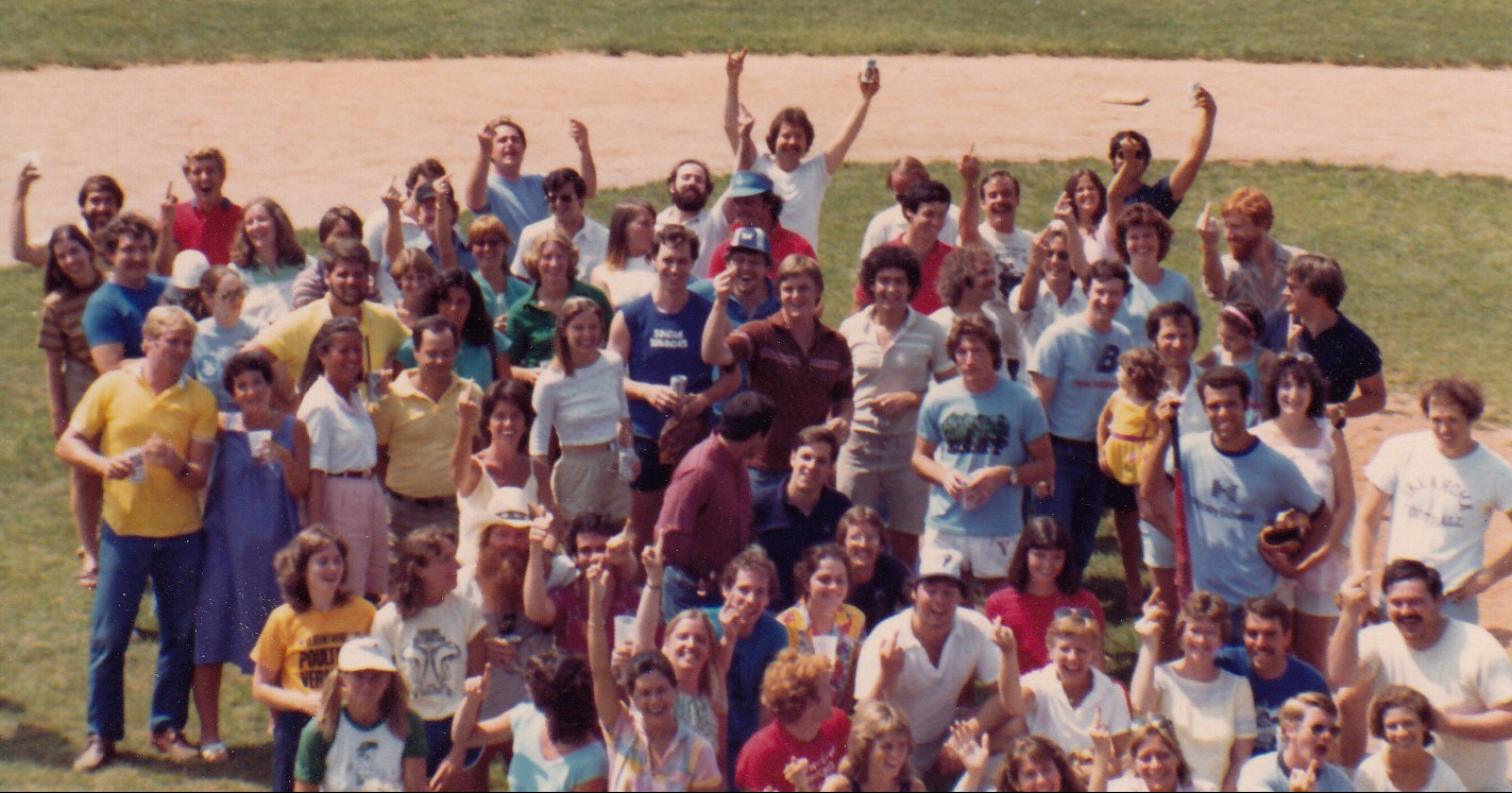 1981 – Our first big reunion, with a Saturday afternoon softball game, Saturday night dinner dance at the Stamford Howard Johnson’s, and Sunday beer-and-barbecue at Weed Beach.