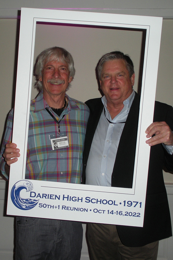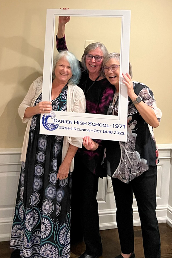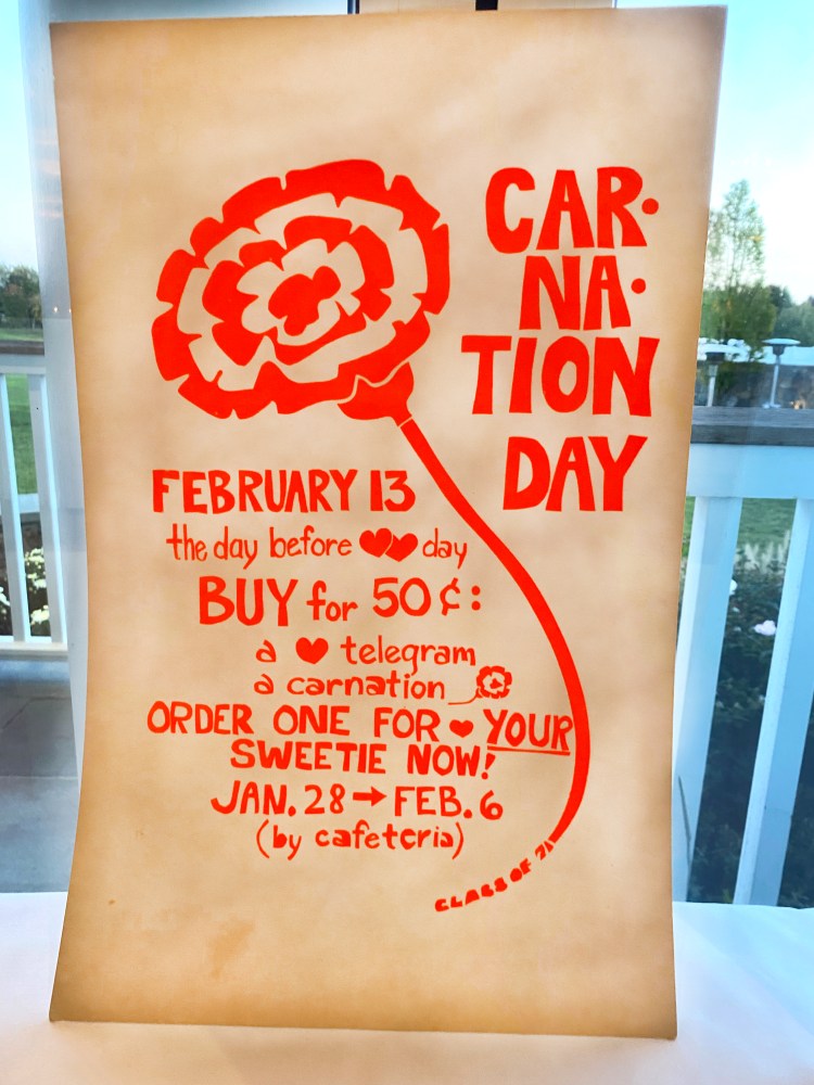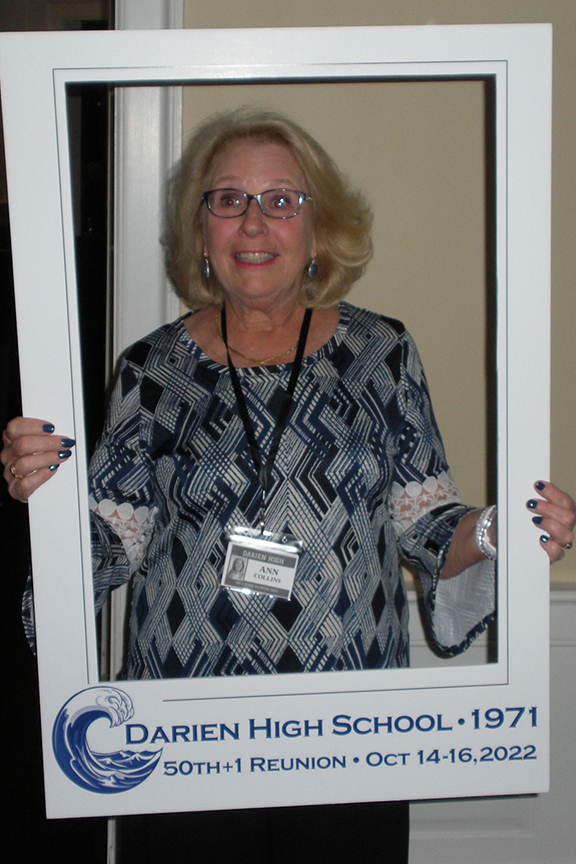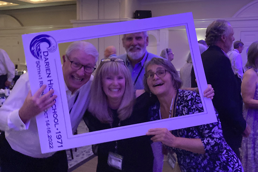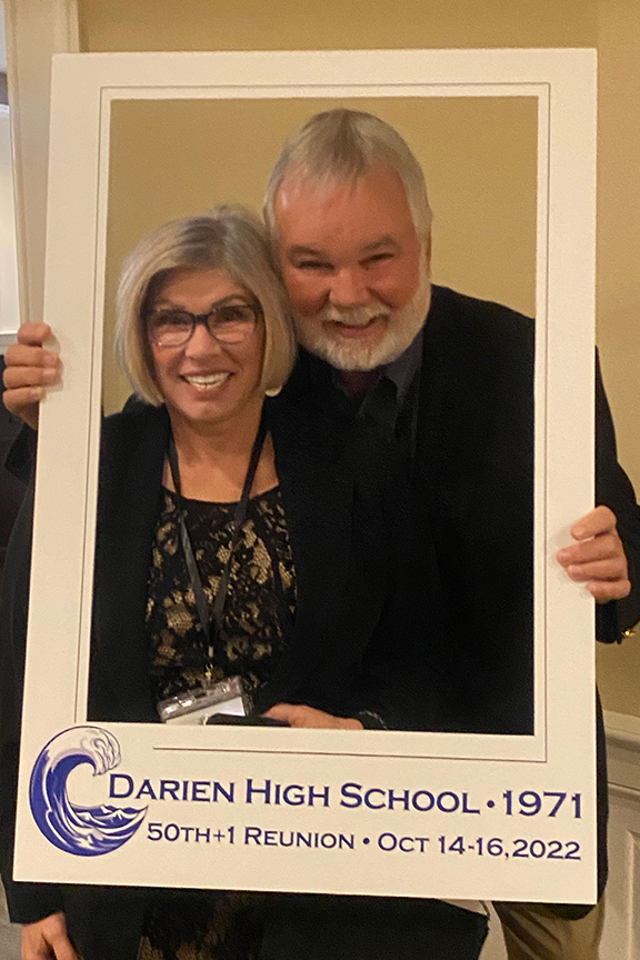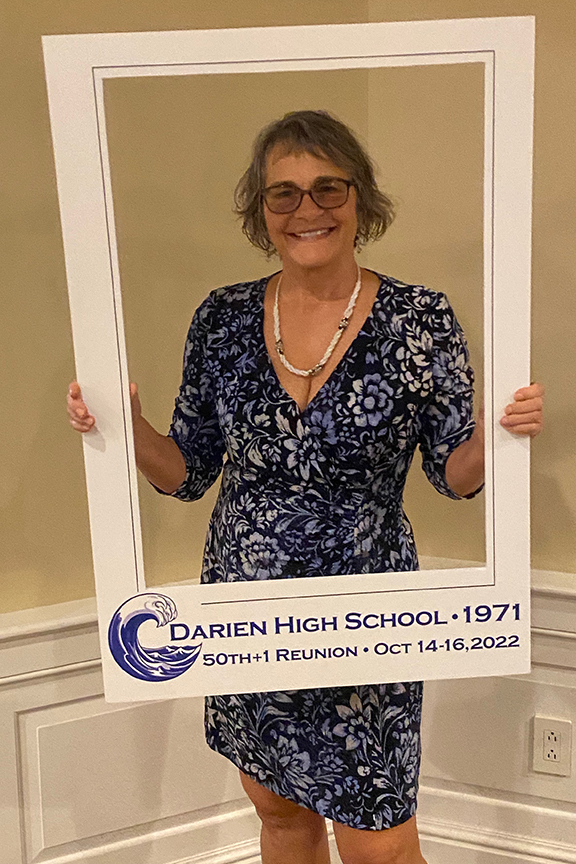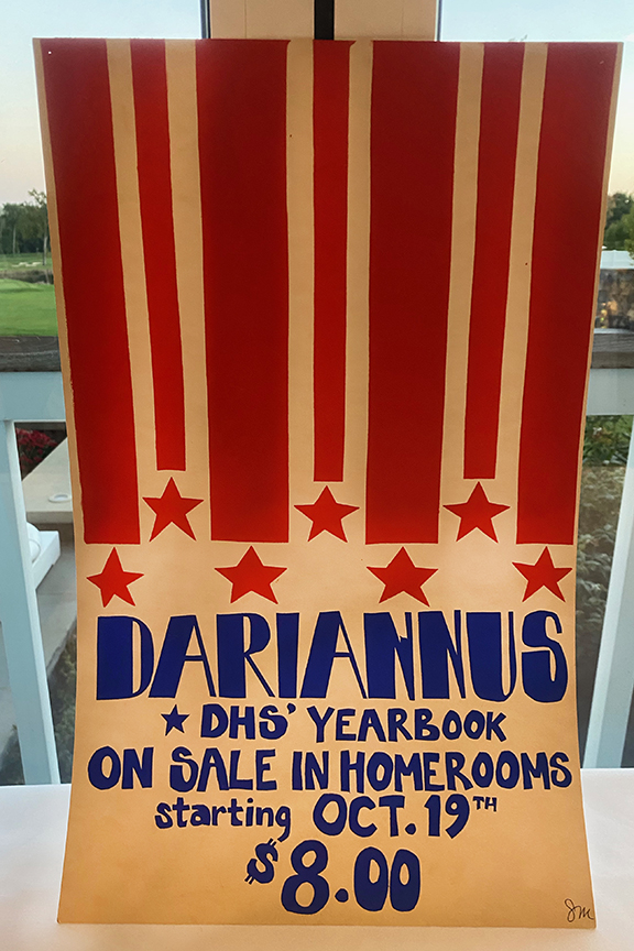 The DHS hotmail account overseer, Sandy Cunningham Volin awaits the crowd.So good to have Lee Kiggins back again for the 50th+1!Sandra / SandyScott Rodgers and his honey LisaBruce ManchonTammis Rehill LazarusSteve & Darlene LotzJay DeVivoDoug LawrenceRoger & Bev BeattyBobby MoultonMary Ellen QuirkJeff WrightSue Reichart AllenReuben JefferyLyn Littlefield HoopesGail MardfinLiz Hough HardenMike HarbisonOur emcee, Hayes ClarkJeff Castle & Susie Castle ’72Ellen StitzelCarley TankoosMary Kay DaughtersJudy & Bob ShepherdAnn CollinsCarley and DougJim Tarantino, Ned FarringtonMarty WomerBFFs: Cathy Ashley Muskus, Kathy Fricke Blanton, Mary Pfann SavagePhil Williams, Peter RogersMike H amuses Posey Holland Griffin & her husband GregGail brought old posters she silkscreened back in the day.Remember the Senior Prom? $8.00!Sandy Shaw Valek & husband RonSandy, Joe Cook & Debbie Mayo CookGreg & PoseyGreetings & laughter aboundMary Cusack Sivore, Bill CooksonLyn, Sally Wurtzell Wright, Alexis Massad GleitmanJohn Shaker and his backup of sillies, Gail, Sue, and PeterThe iconic pumpkin, courtesy of David HendricksonC’est cheese!It was a delicious feast. David Foote & Marita Villalva at leftSadly, we learned we needed to add Jay Baldwin to this list…Ralph & Nancy Lockwood WhitcombHayes delivers A toast to 1971!Emcee Hayes, Matt Scott front leftThe fabulous reunion committee, all Connecticutians except Gail (California) and Bruce (Colorado). Let’s hear it for Zoom!