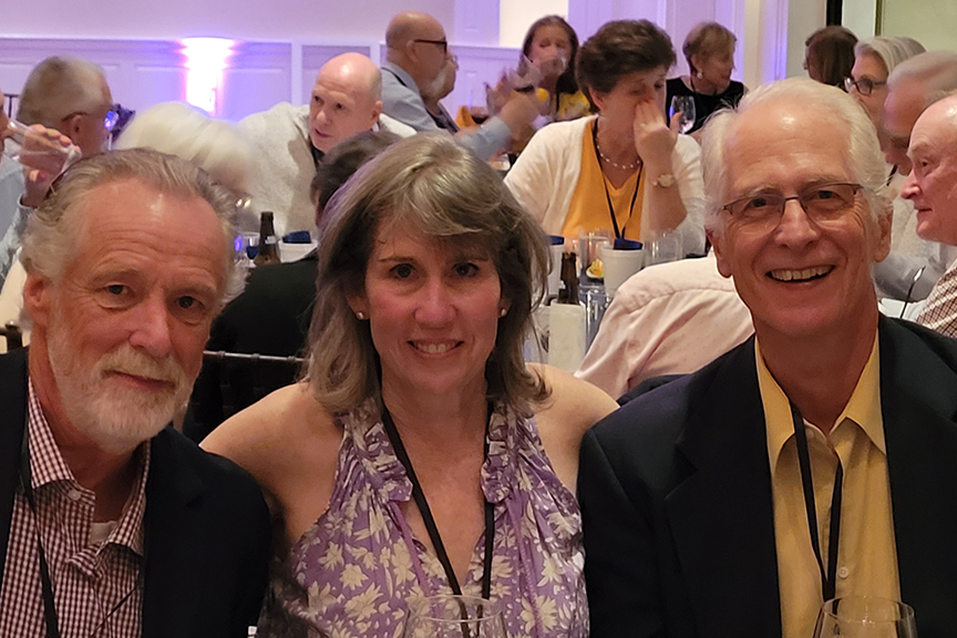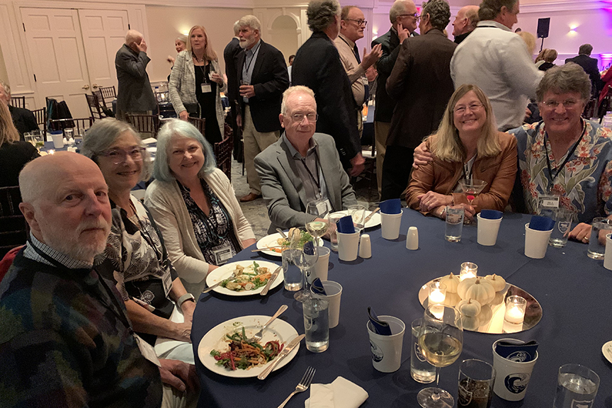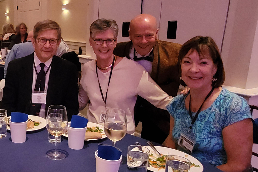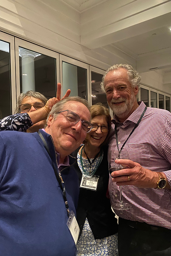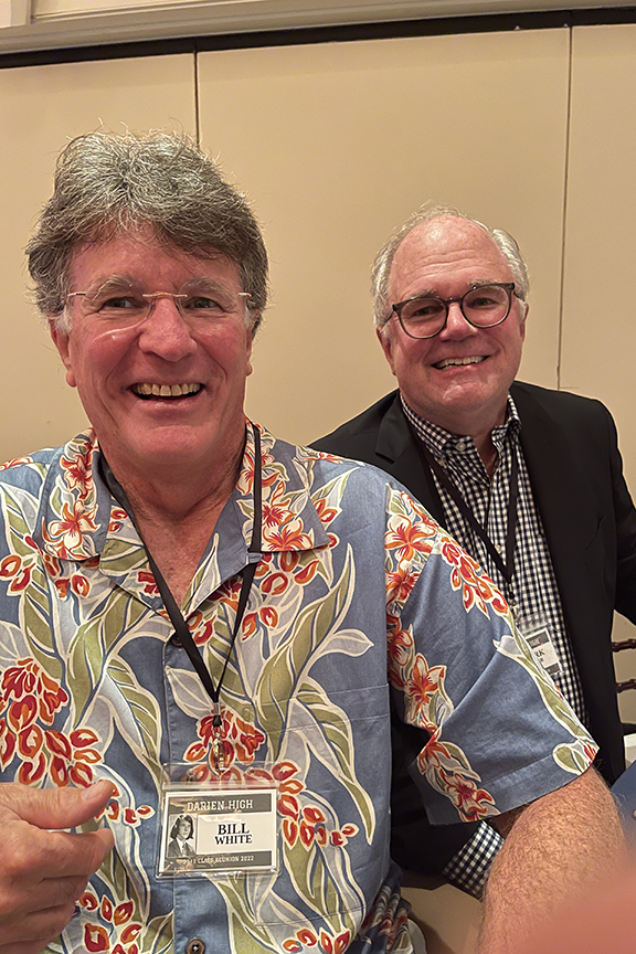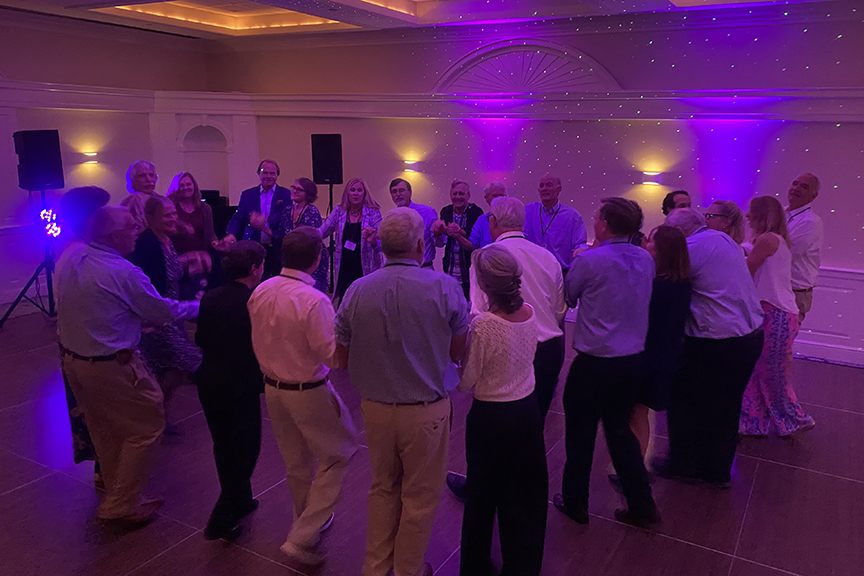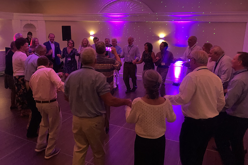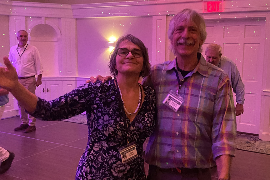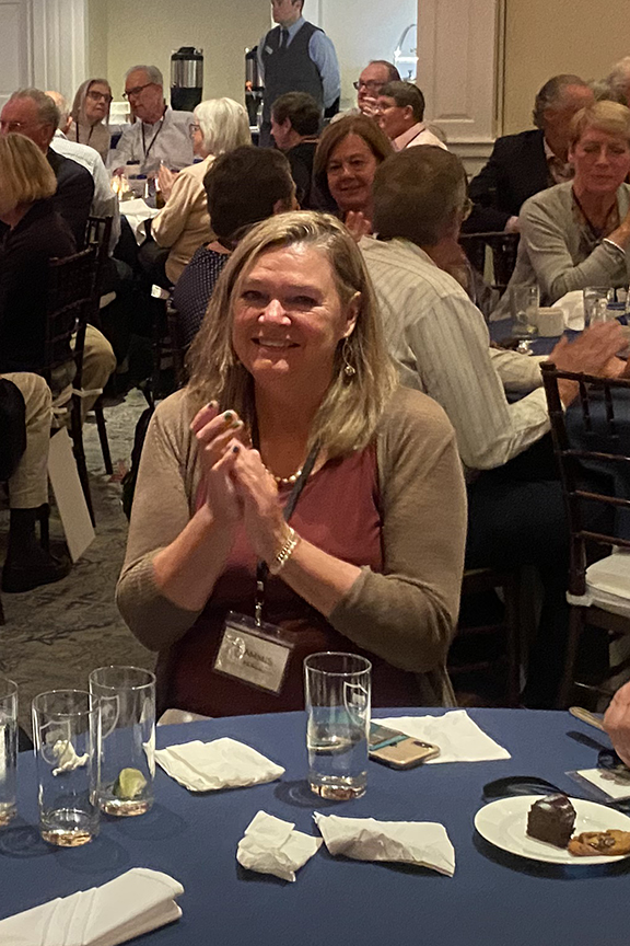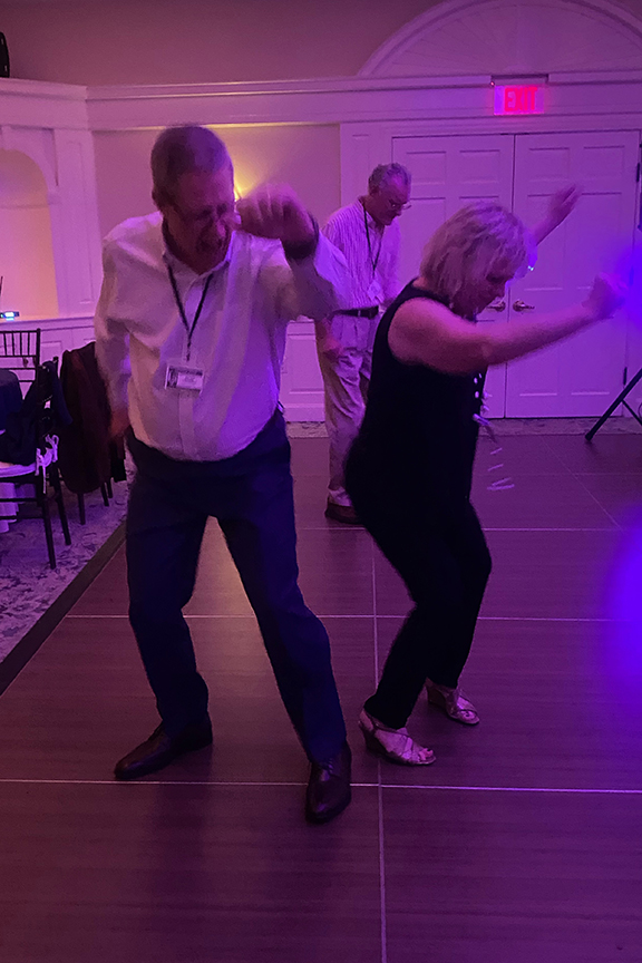 Still fitting into his Temptations jacket from the senior year talent show, Hayes Clark did another great job as emcee, first thanking the hardworking reunion committee (Come on, two years of zoom meetings with Gail keeping people focused…?!), leading a moment of reflection remembering those classmates who have departed, and then humorously reporting on commonalities from the questionnaire responses. (Questionnaires still being accepted until the end of December 2022.)