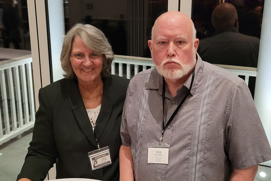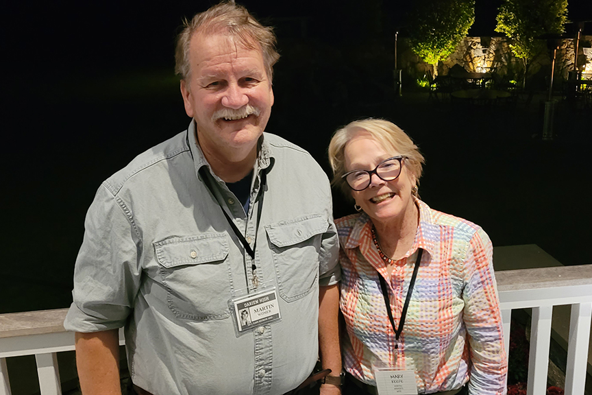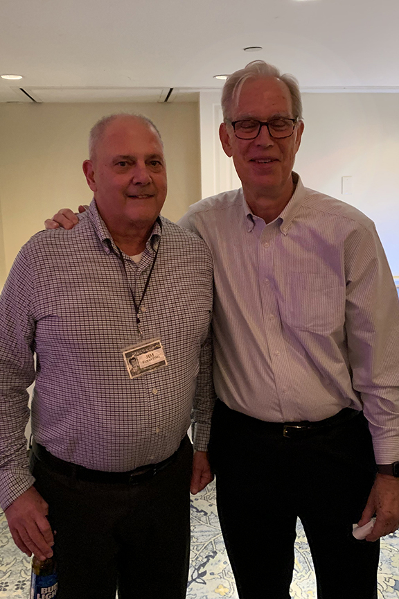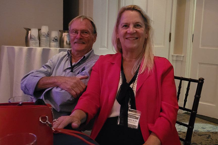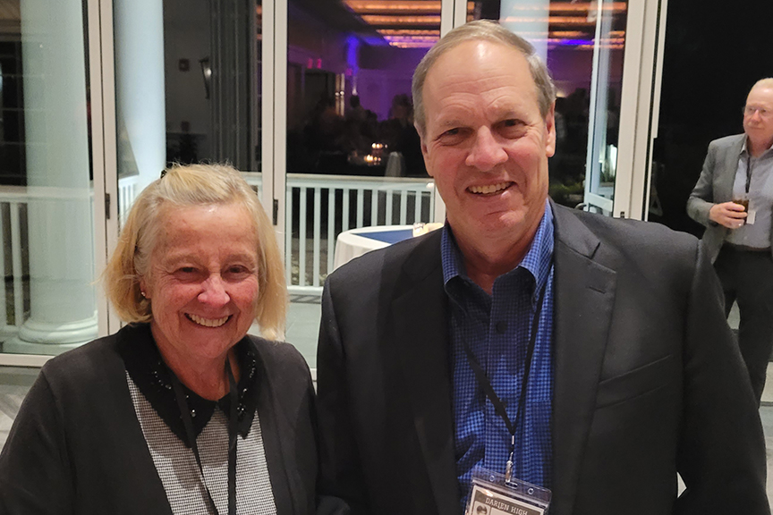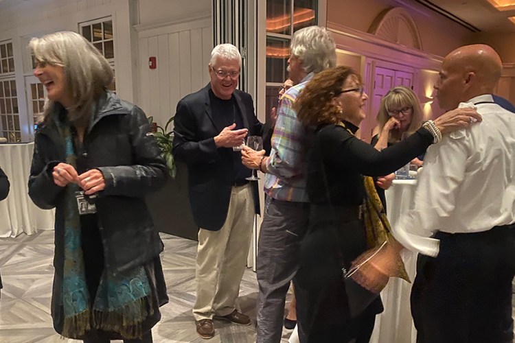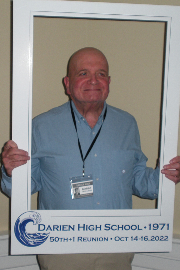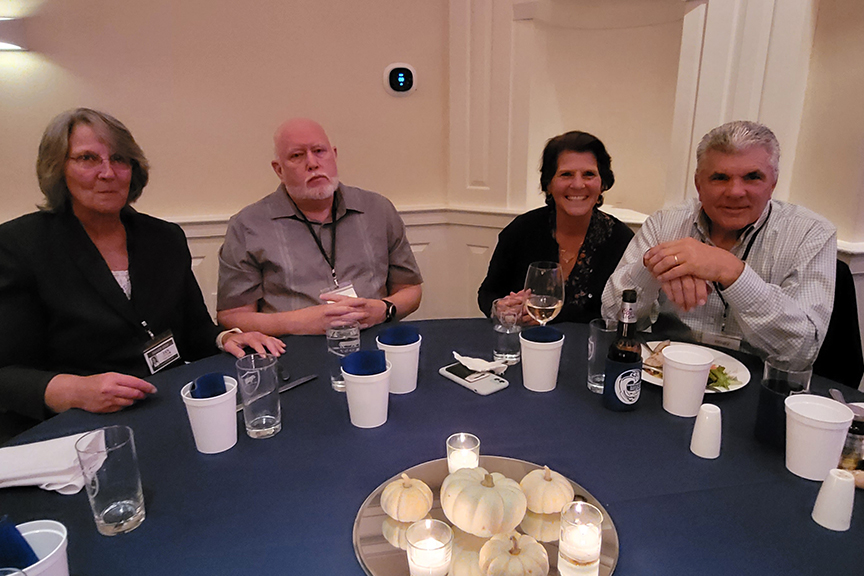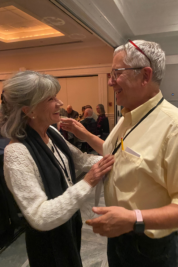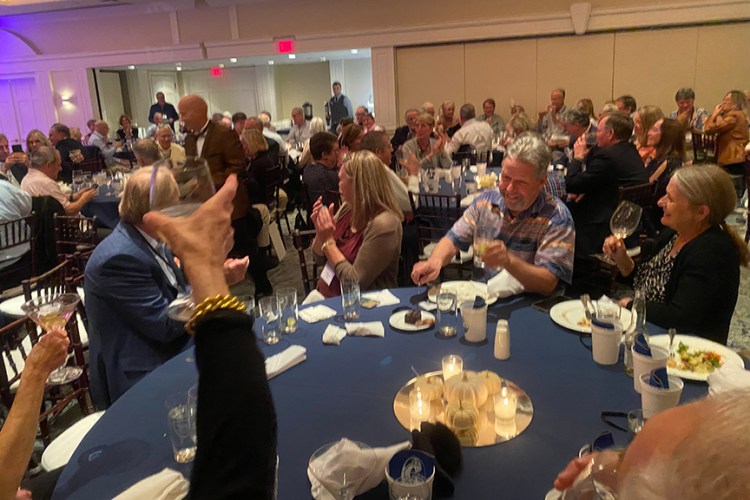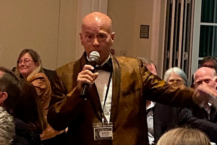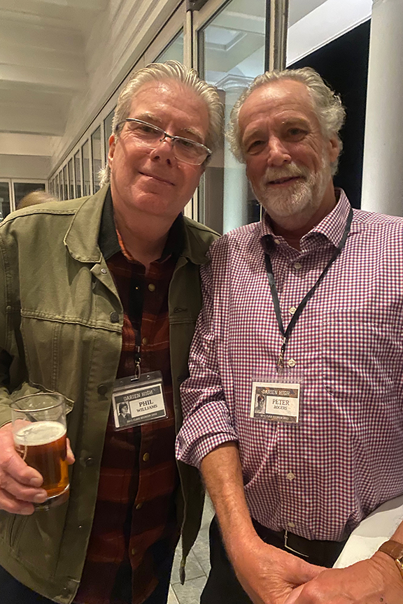 Still fitting into his Temptations jacket from the senior year talent show, Hayes Clark did another great job as emcee, first thanking the hardworking reunion committee (Come on, two years of zoom meetings with Gail keeping people focused…?!), leading a moment of reflection remembering those classmates who have departed, and then humorously reporting on commonalities from the questionnaire responses. (Questionnaires still being accepted until the end of December 2022.)