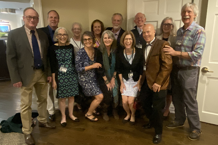 BACK: Nick Warren, Jane Irvine Montgomery, Matt Scott & Sue Yates Scott, David Hendrickson, Peter Rogers, Tammis Rehill Lazarus, Christine & Lee Kiggins, Rhonda & Mike Keane (front), Ted Eng, Bill Mulkerin, Barbara & Ed Maher, Bill Wright (behind them), Abby Goodyear, Doug Lawrence, Daryl Driscoll & Lindley Franklin, Peter Sweeney, Conni Bergin Carrozelli, Ray Lieutenvinkas, John Carrozelli. FRONT: Bruce, Manchon, Gail Mardfin, Kathi Rogers, Rob Hight, Mary Cusack Sivore, Mike Moore, Lynn Doscher-Vreeland.