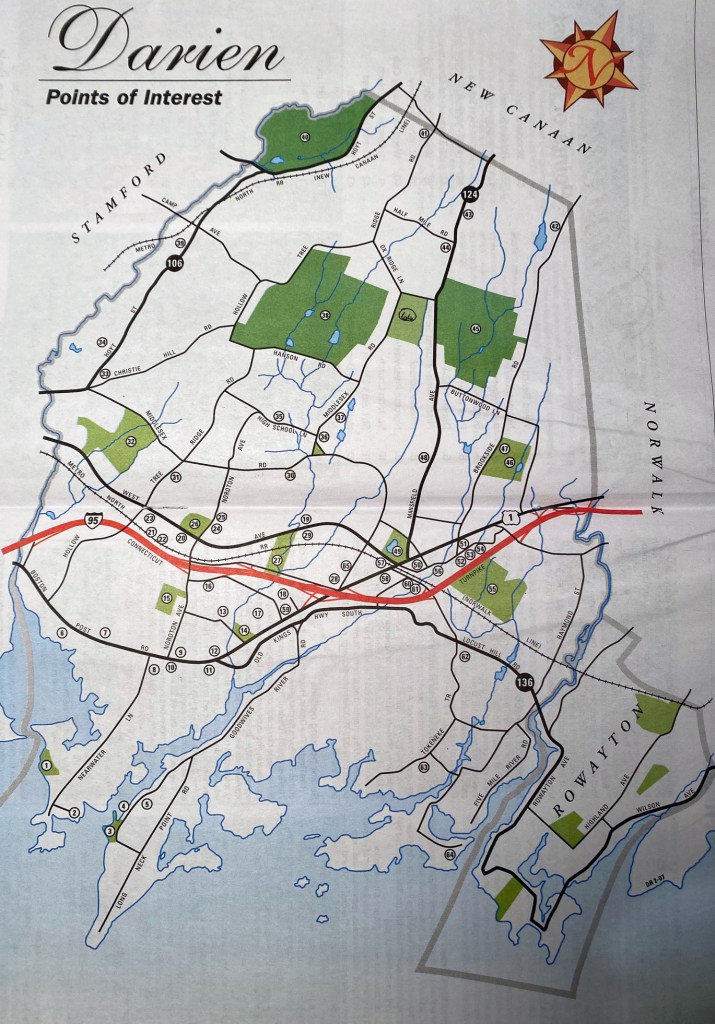 1) Museum of Darien – 45 Old Kings Highway North: The marker is on the front lawn of the Museum