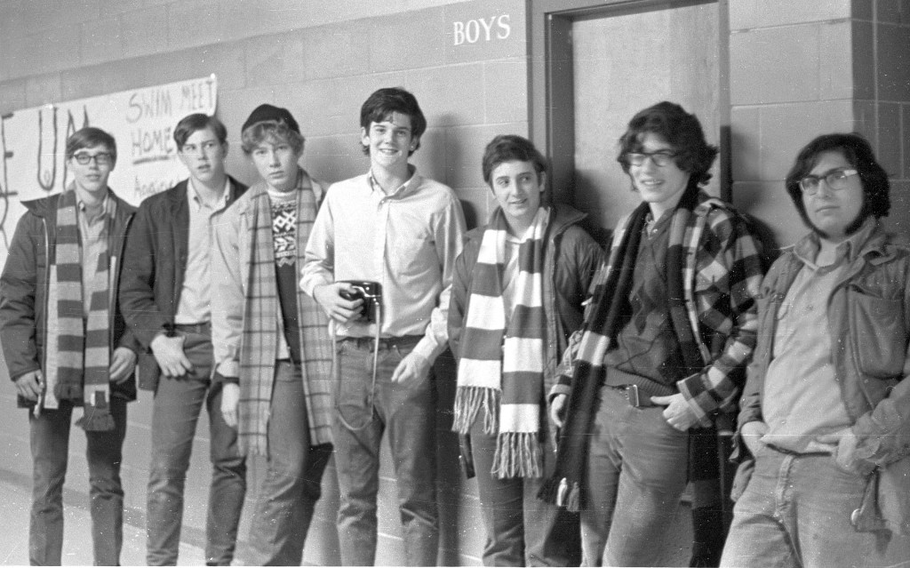 Major league baseball player Bobby Saverine (a relation of Ralph’s) meets with (L to R) Joe Sestito, John Valente, Joe Vitti, Joe Calve, and Peter Rogers. Photo submitted by John Valente, found among thousands of photos in his mother’s house. The event was the Darien Youth Atheletic League Annual Banquet, around 1963 or 1964. The DHS Camera Club. Only Jim Gammill is holding a camera! Photo submitted by Joe Vitti.