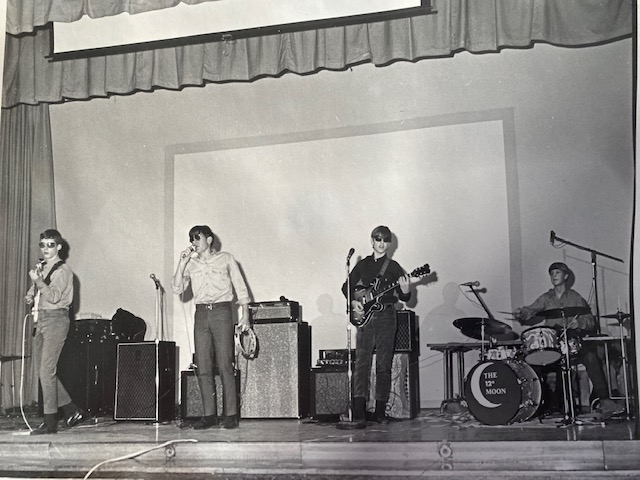 PETER ROGERS REMEMBERS… “Our most memorable moment was WOWing the audience at the 9th Grade Middlesex Battle of the Bands (five bands) when In mid-song, Peter and Don left the stage to venture into the auditorium aisles while continuing to play by virtue of 50-foot cords still connected to stage amplifiers. While leaping from the 4-inch high stage, both lost their beat but continued playing out of step and out of tune. The crowd was so taken with this performance, they voted the Twelfth Moon dead last! That distinction is ours and nobody can take it away!”